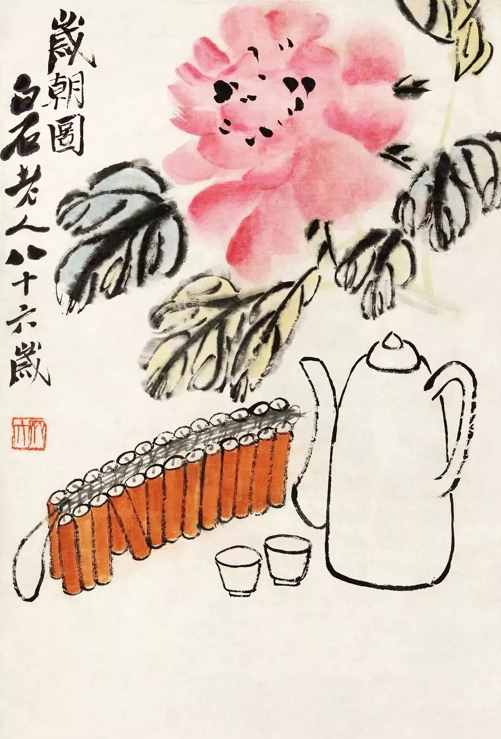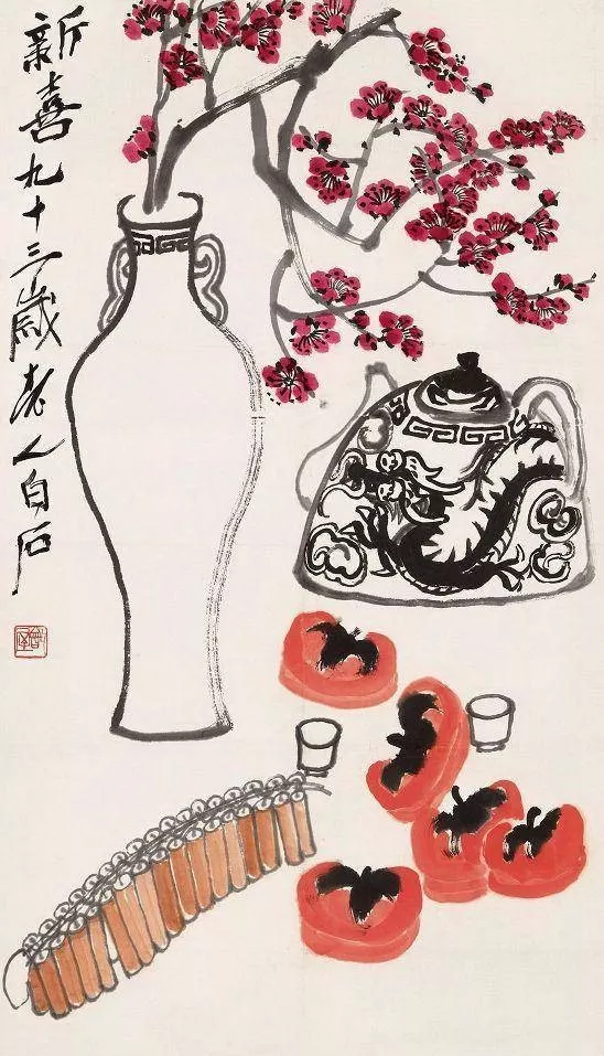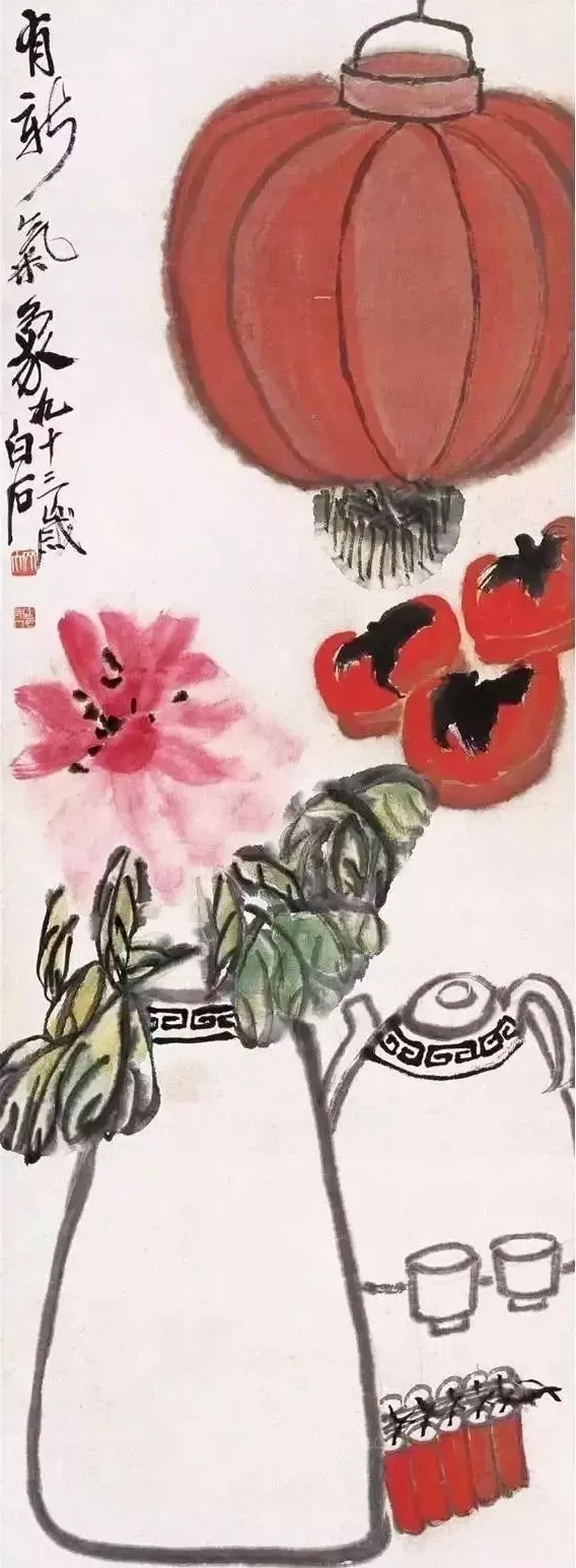 王人白石画岁朝图,就像在给咱老匹夫写道喜诗。他把生涯里的常见物,形成了清静的标识。莫得无出其右的距离感,只好满满的亲切和关注。