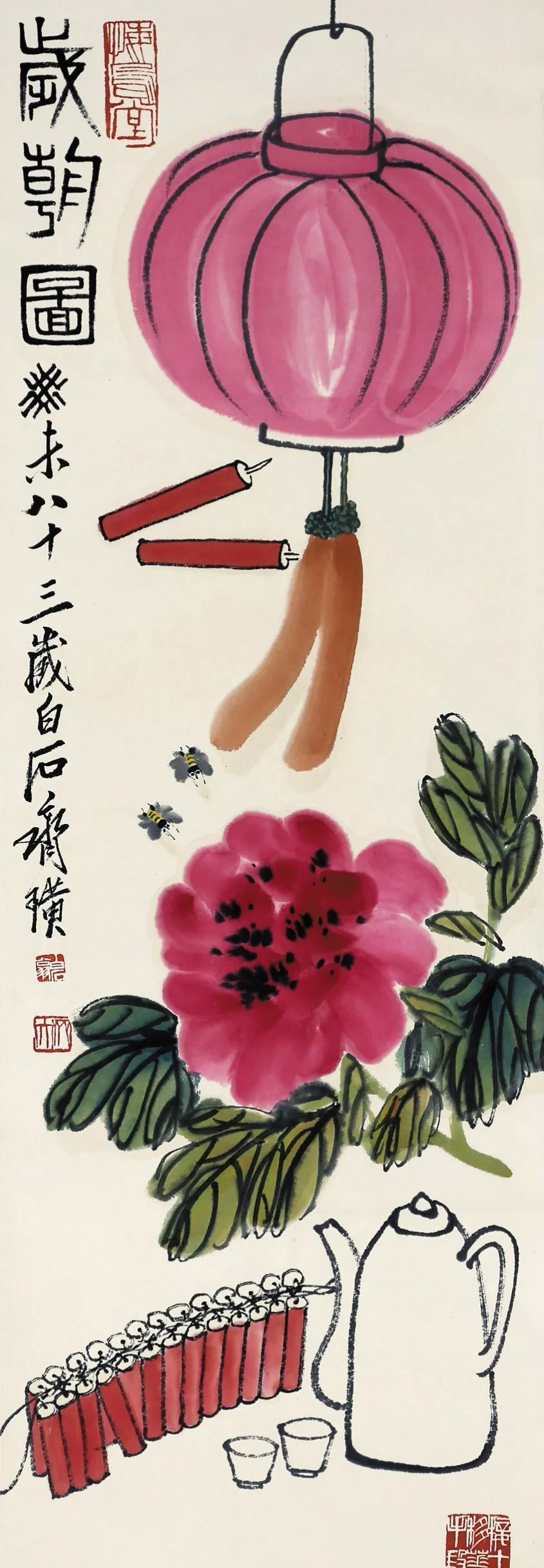 王人白石的岁朝图,那然则春节画里的“顶流”!别的画认真高尚,他的画却像从咱老匹夫日子里长出来的,尽是燃烧气。