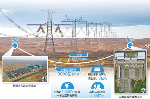 r准东—皖南工程一端连着新疆,一端连着长三角地区。5年来,工程改变了受端地区的用电结构,也带动了新疆的产业发展。